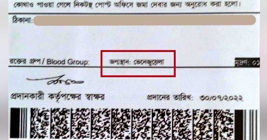 যেমন ভুলের জন্য বাবার বয়স ছেলের চেয়ে দশ বছর কম হয়ে গেছে, মায়ের নামের জায়গায় বসে গেছে বাবার নাম, এমন নজিরও রয়েছে। যা নিয়ে খবরও হয়েছে এর আগে। তবে এবার যে ত্রুটি দেখা যাচ্ছে তা একেবারেই নতুন। শুধু মৌলভীবাজারেই এমনটা কেন ঘটলো আর নামটা অন্য কোন দেশ না হয়ে ভেনেজুয়েলা কেন হল সেসব বিষয়ে আপাতত জানা যাচ্ছে না।