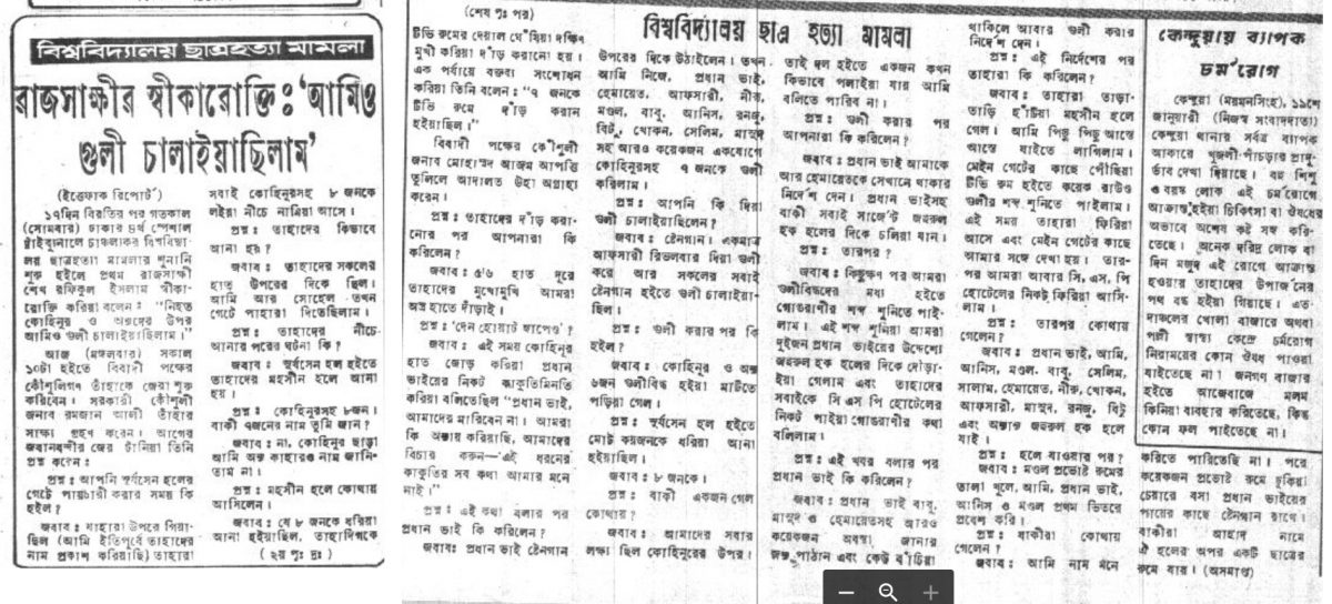 ইত্তেফাক পত্রিকার প্রথম পাতার শিরোনামে মুহসীন হলের সাত খুন
